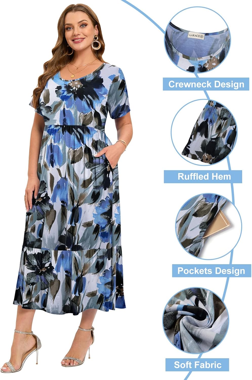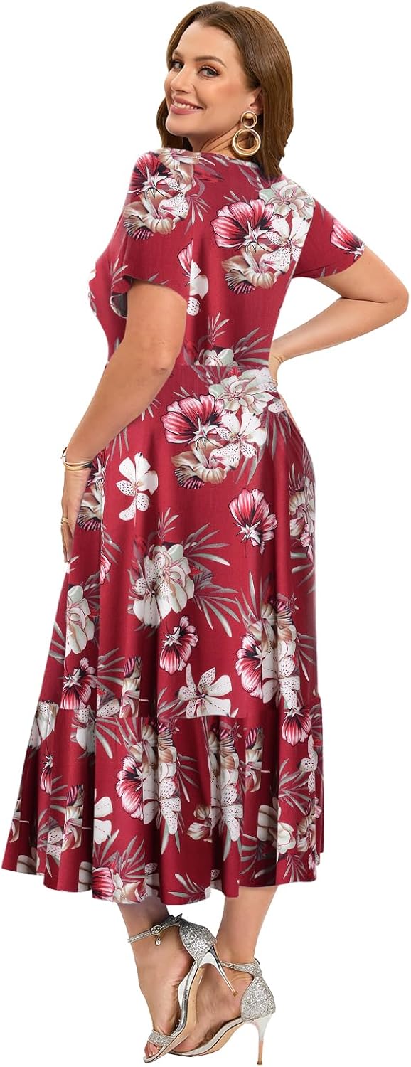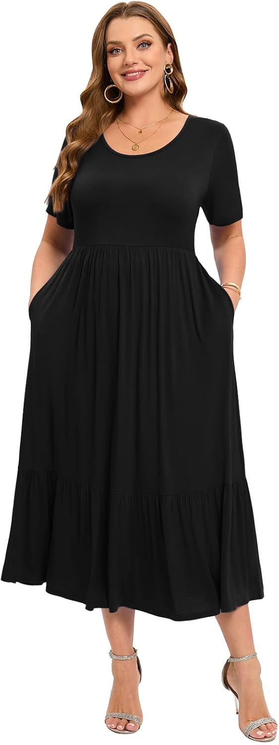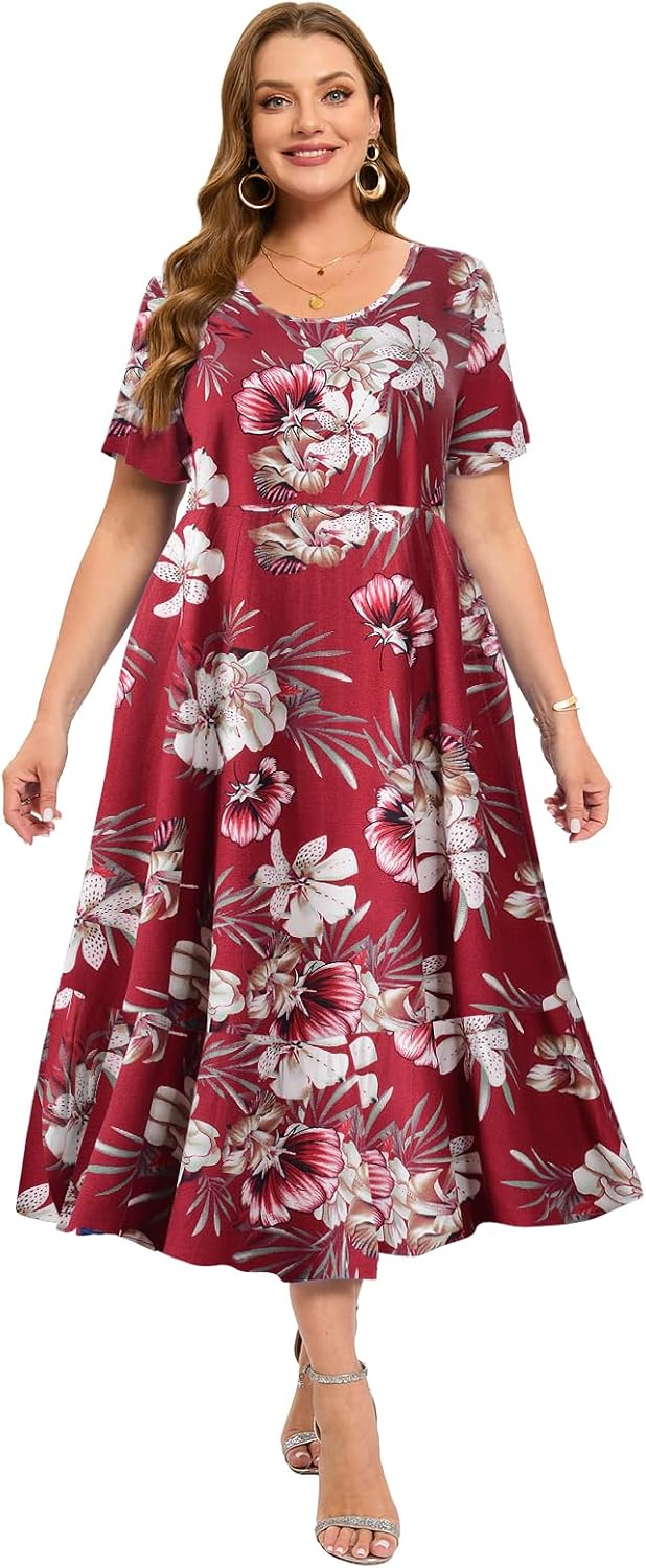 LARACE Plus Size Dresses for Women Summer Casual Short Sleeve Long Dress Flowy Maxi Beach Dresses with Pockets L-6XL