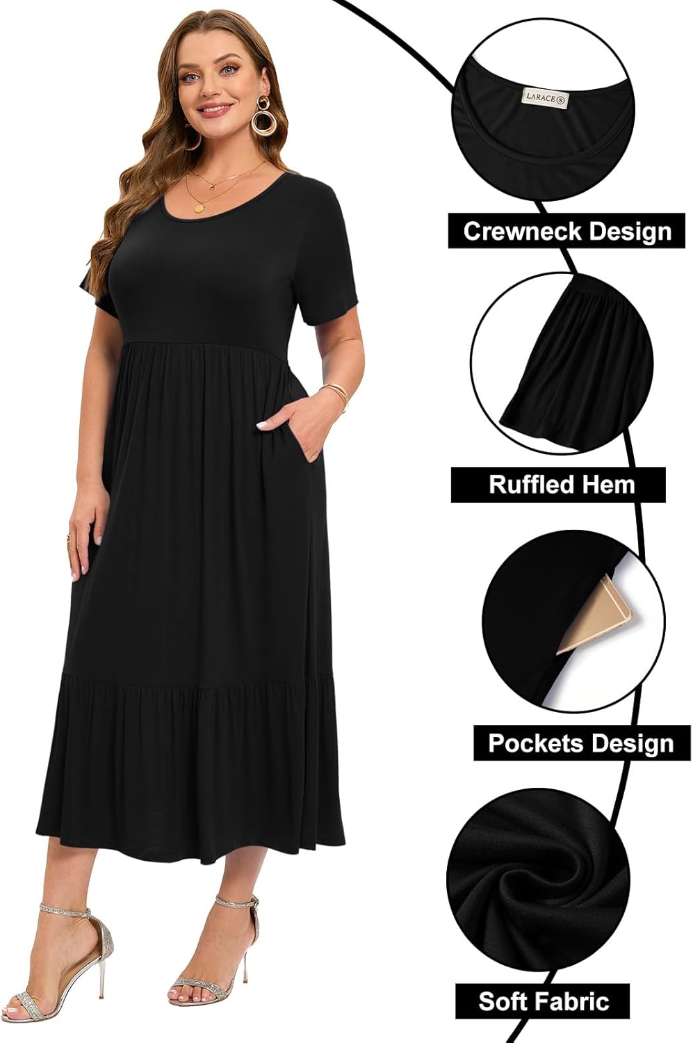 - Classic Design: LARACE midi dresses for women feature a classic crew neck, short sleeves, and convenient pockets, offering a flattering and comfortable fit. The casual basic style ensures you're ready for any occasion, from a laid-back day out to a chic evening gathering